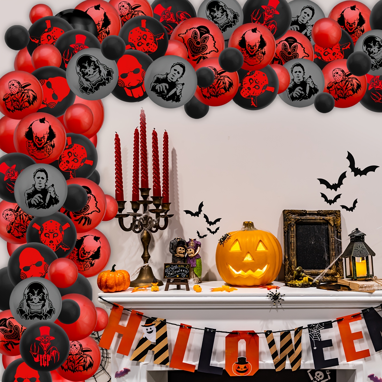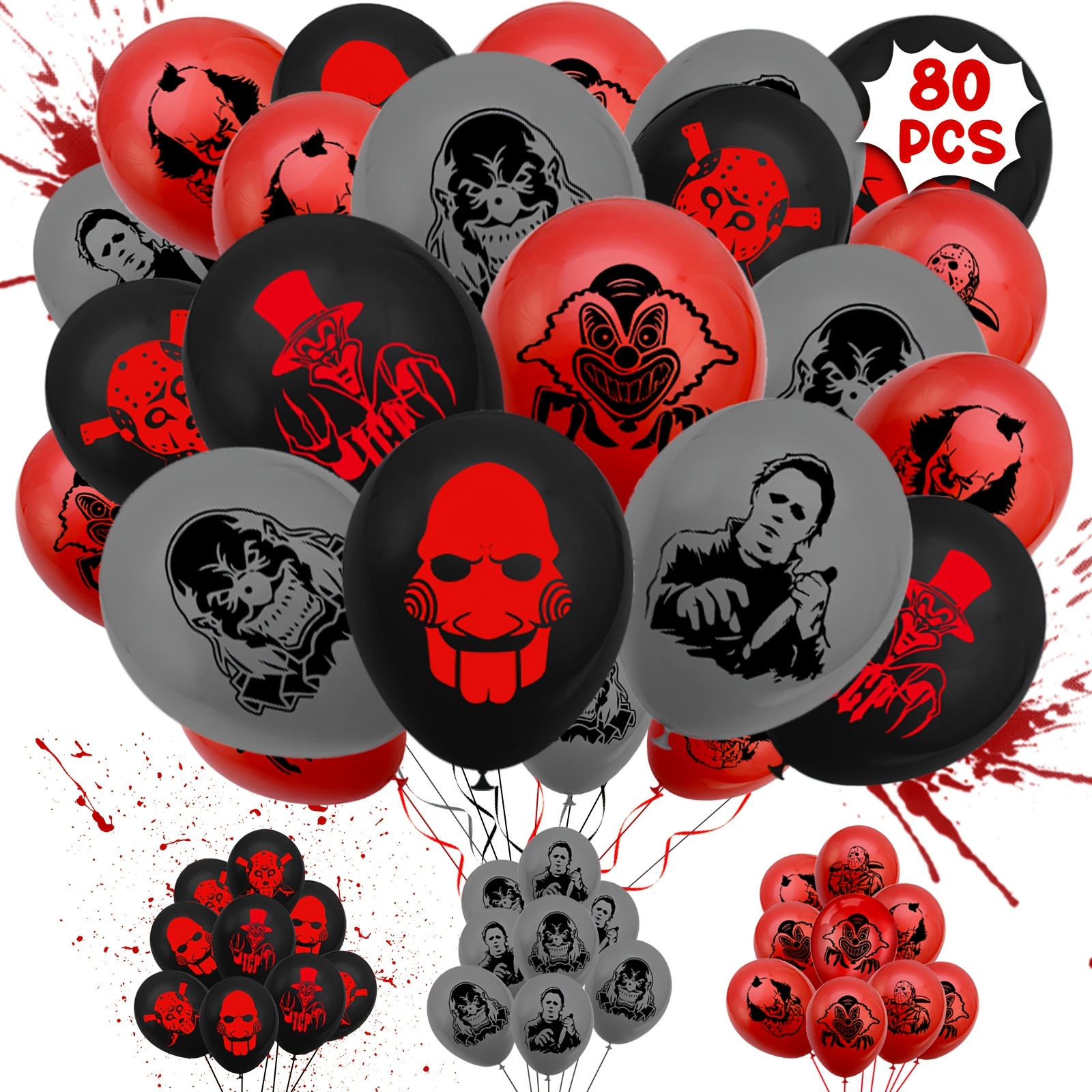 • Creepy Horror Design: Includes a mix of red and black balloons with detailed horror character prints.