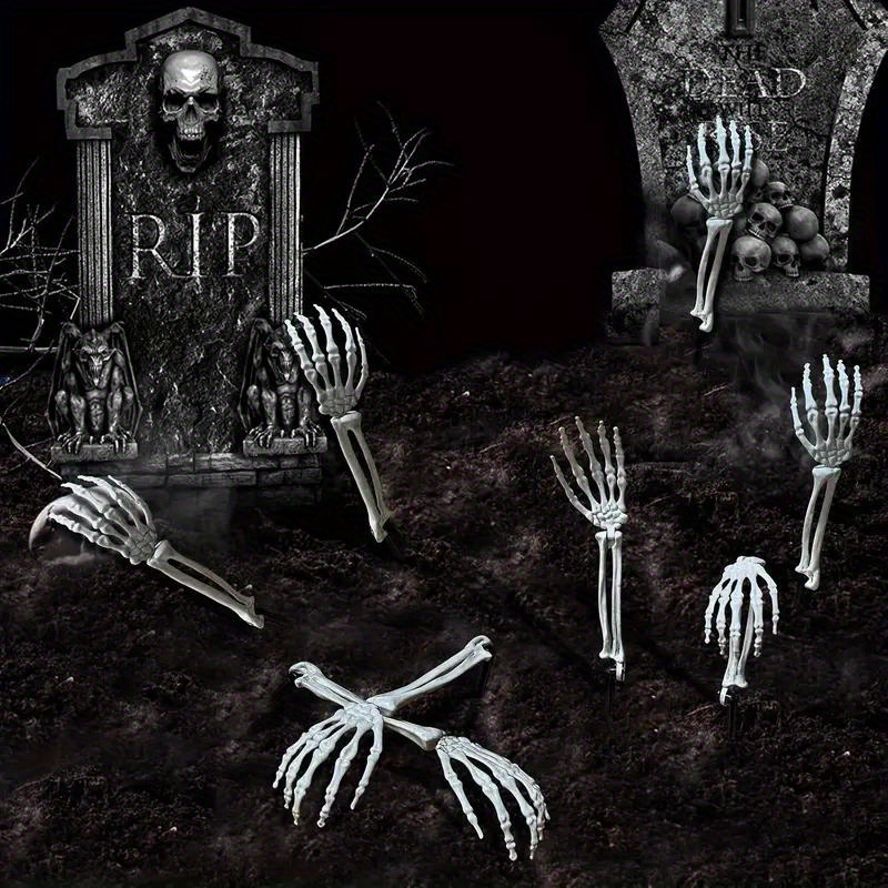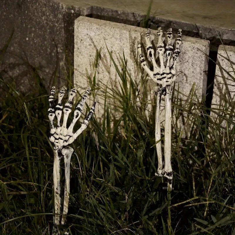 Add a chilling touch to your Halloween décor with these realistic skeleton hand stakes! Made from durable plastic, each hand looks like it’s crawling out of the grave — the perfect prop to spook trick-or-treaters and guests alike. Whether placed in your garden, lawn, or haunted house setup, these bone hands bring eerie realism to any scene.